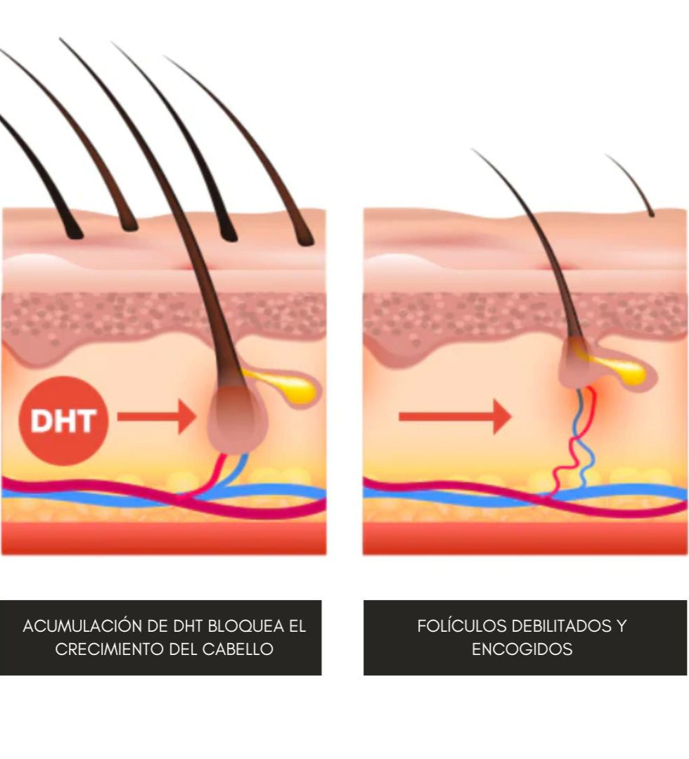 Esto fortalece el cabello existente y reactiva folículos inactivos, promoviendo un crecimiento más denso y saludable.